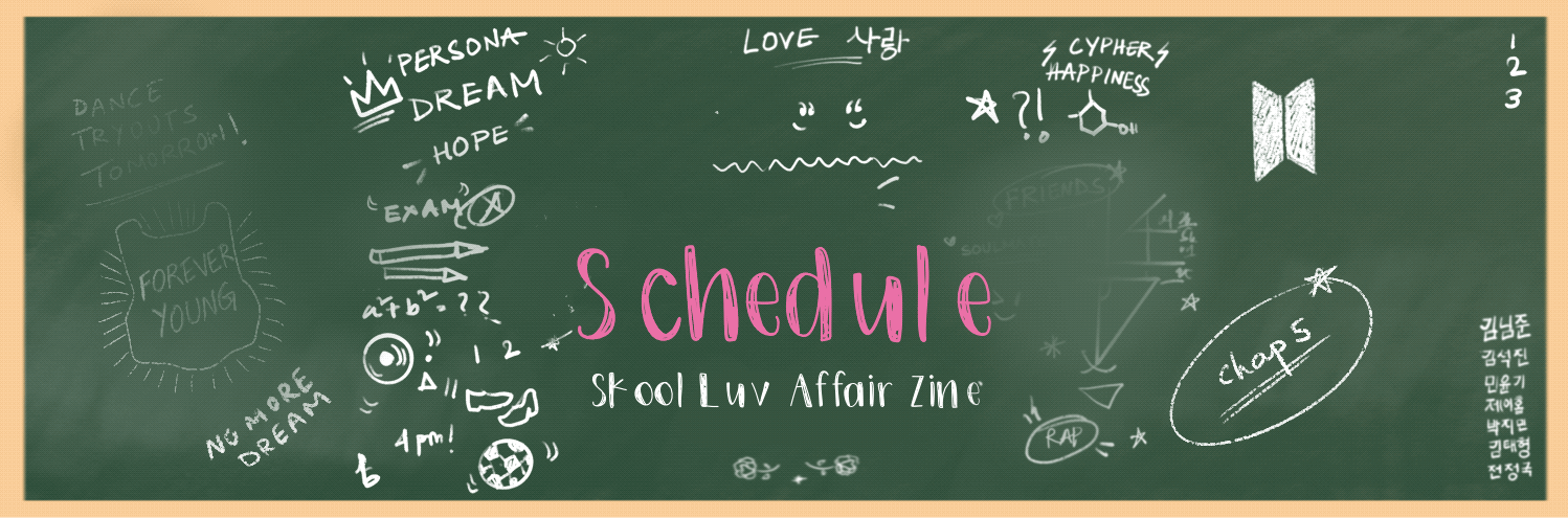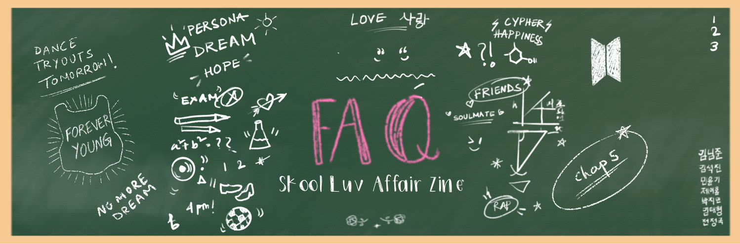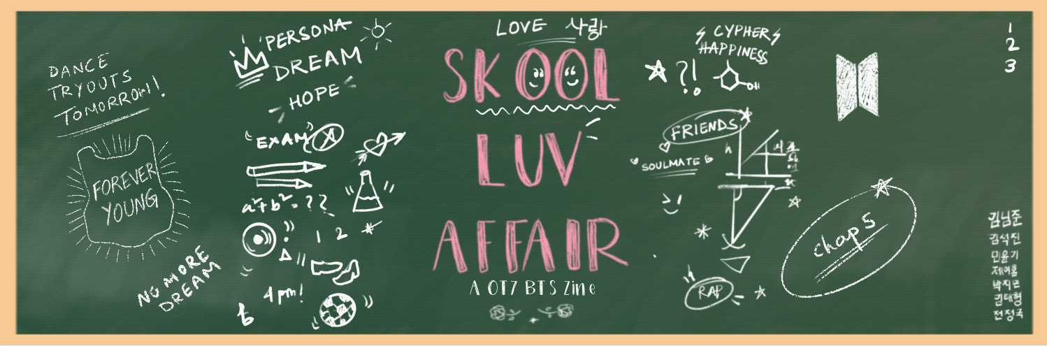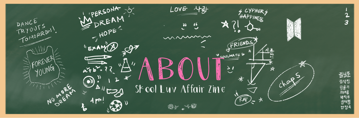 Hello everyone, and thank you for your interest in Skool Luv Affair BTS zine! The concept for this project is an OT7 BTS zine, a fan book filled with illustrations and stories capturing the theme of youth inspired by our lovely Bangtan boys x high school moments✨